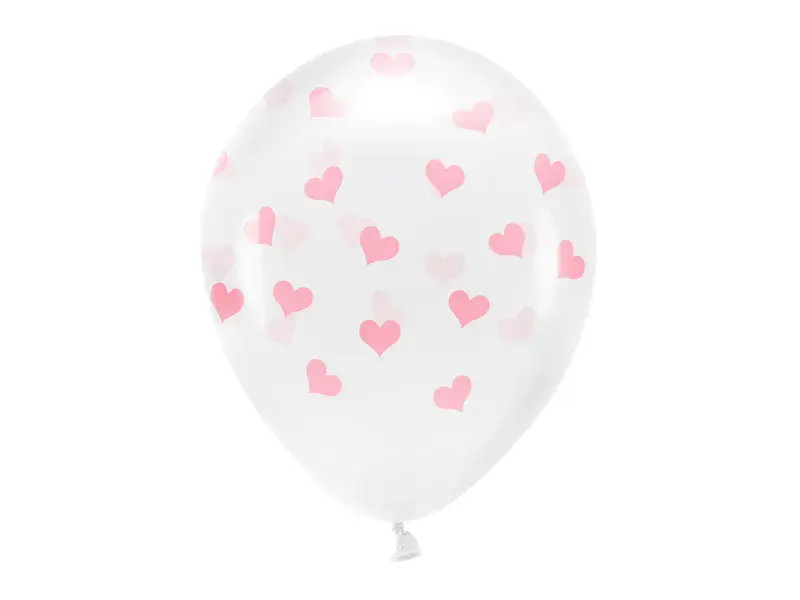Skab en sød og elegant stemning med disse transparente latexballoner med små lyserøde hjerter.