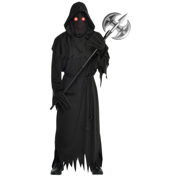 Kostumet indeholder: kåbe, bælte, handsker og maske med lysende øjne