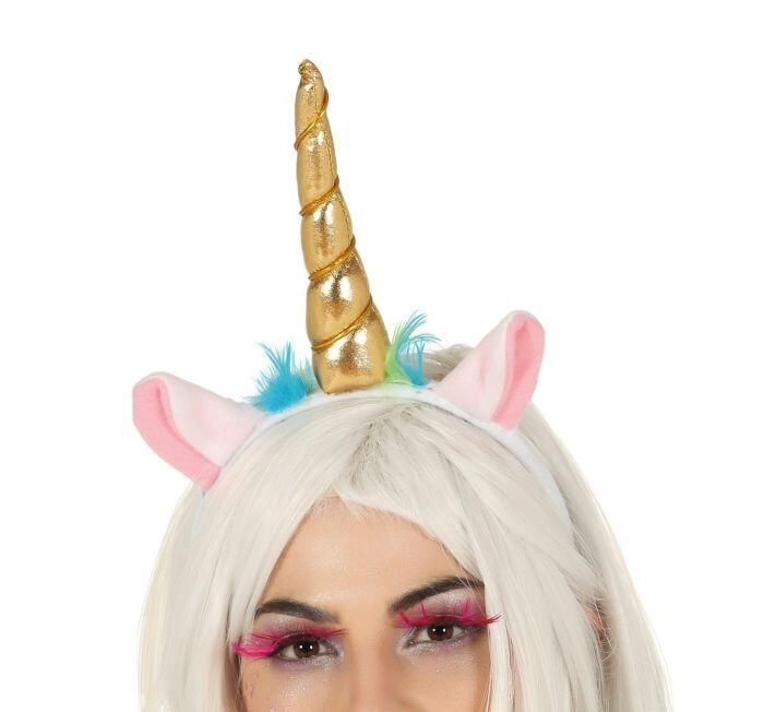 Skru helt op for fantasy-faktoren med denne enhjørning hårbøjle med guldfarvet horn. En skøn accessory til dig, der elsker farver, fantasi og fest...
