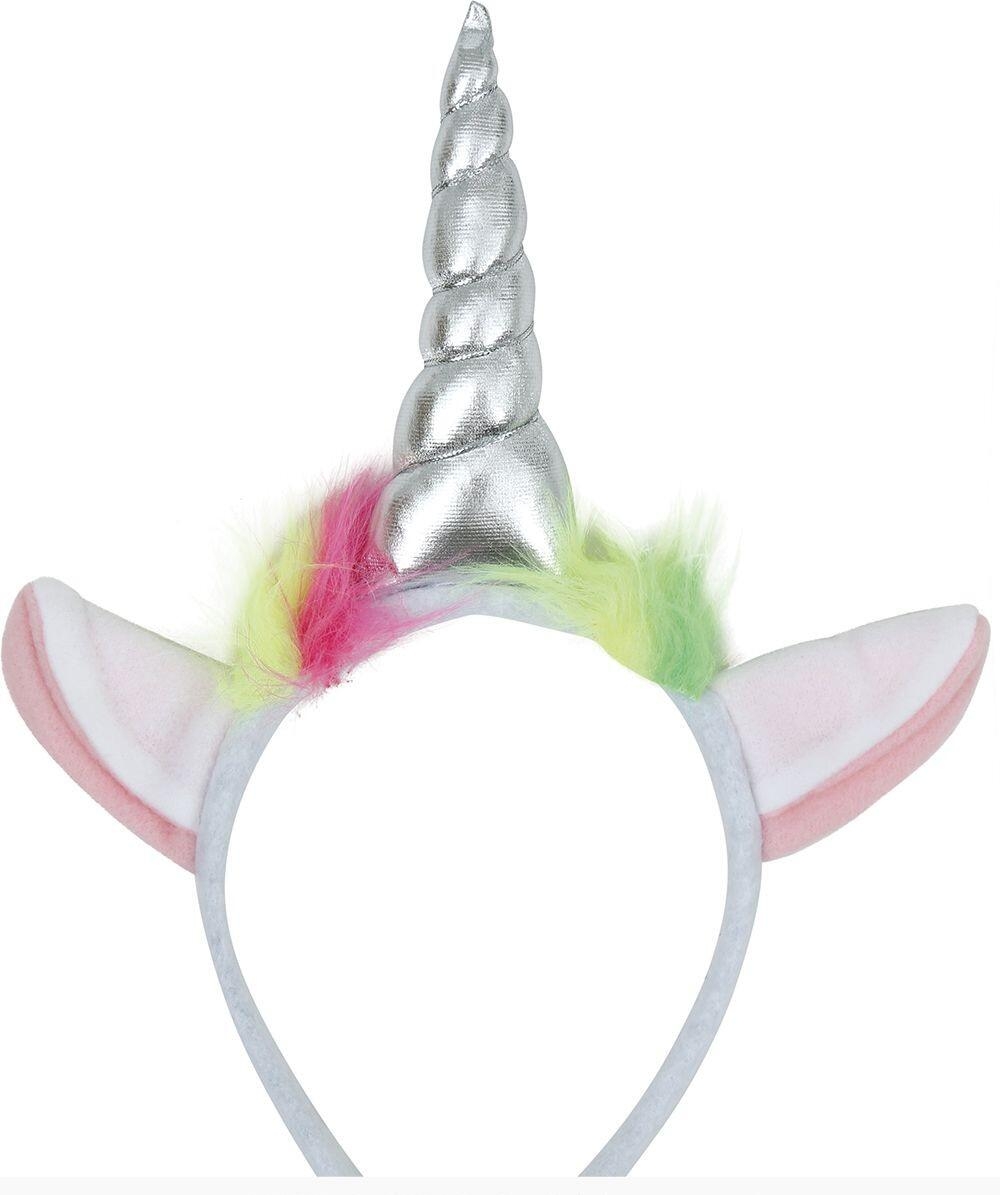 Enhjørning hårbøjle med sølvfarvet horn