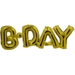 Pakken indeholder 1 folieballon i støvet grøn på 56cm samt teksten: B-day som kan monteres med medfølgende tape på ballonen.
