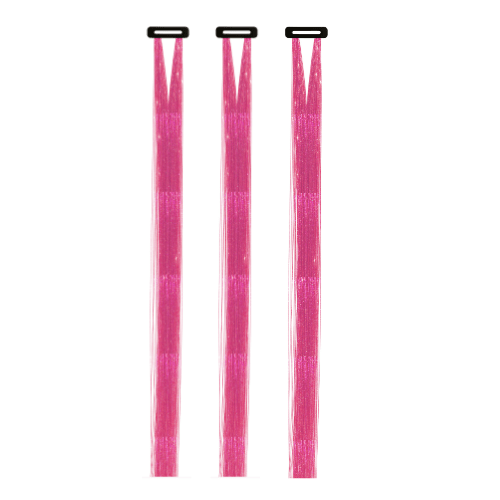 3 stk Hårextensions i glitter-lyserød som måler 50cm og påsættes med hårkam.