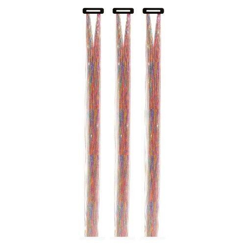 3 stk. Multifarvet glitte extensions på små hårkamme. Hårextensions måler ca. 50 cm i længden.