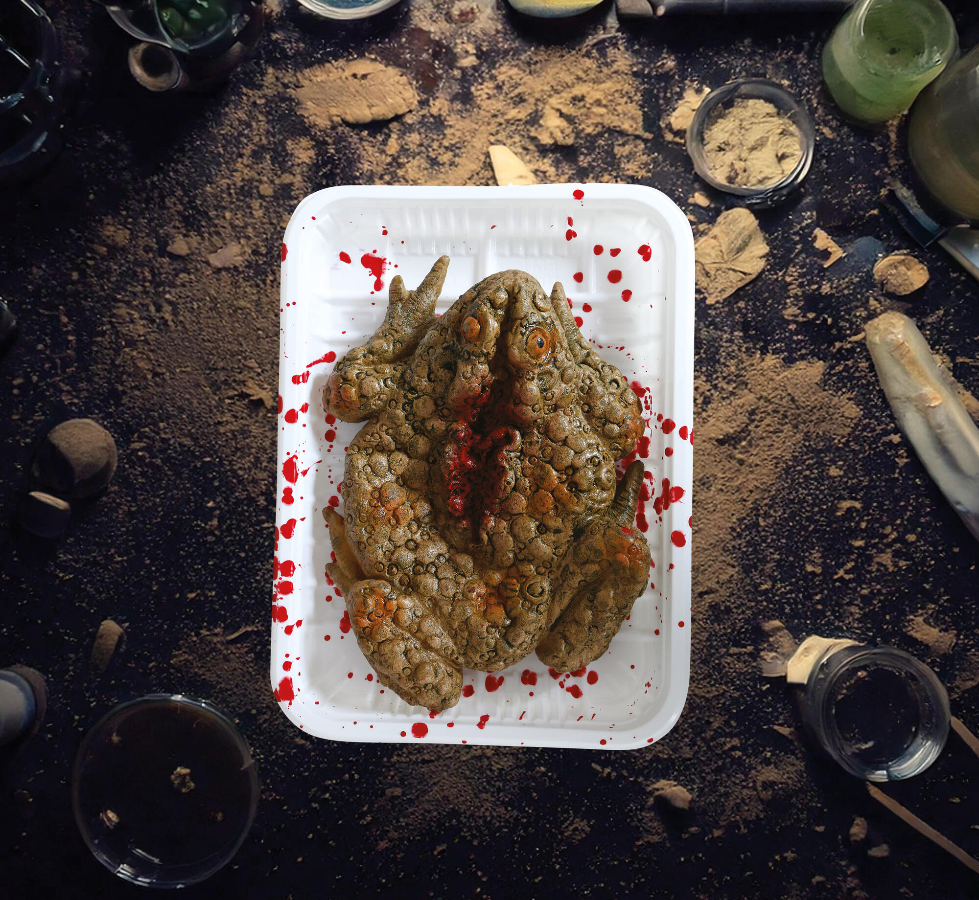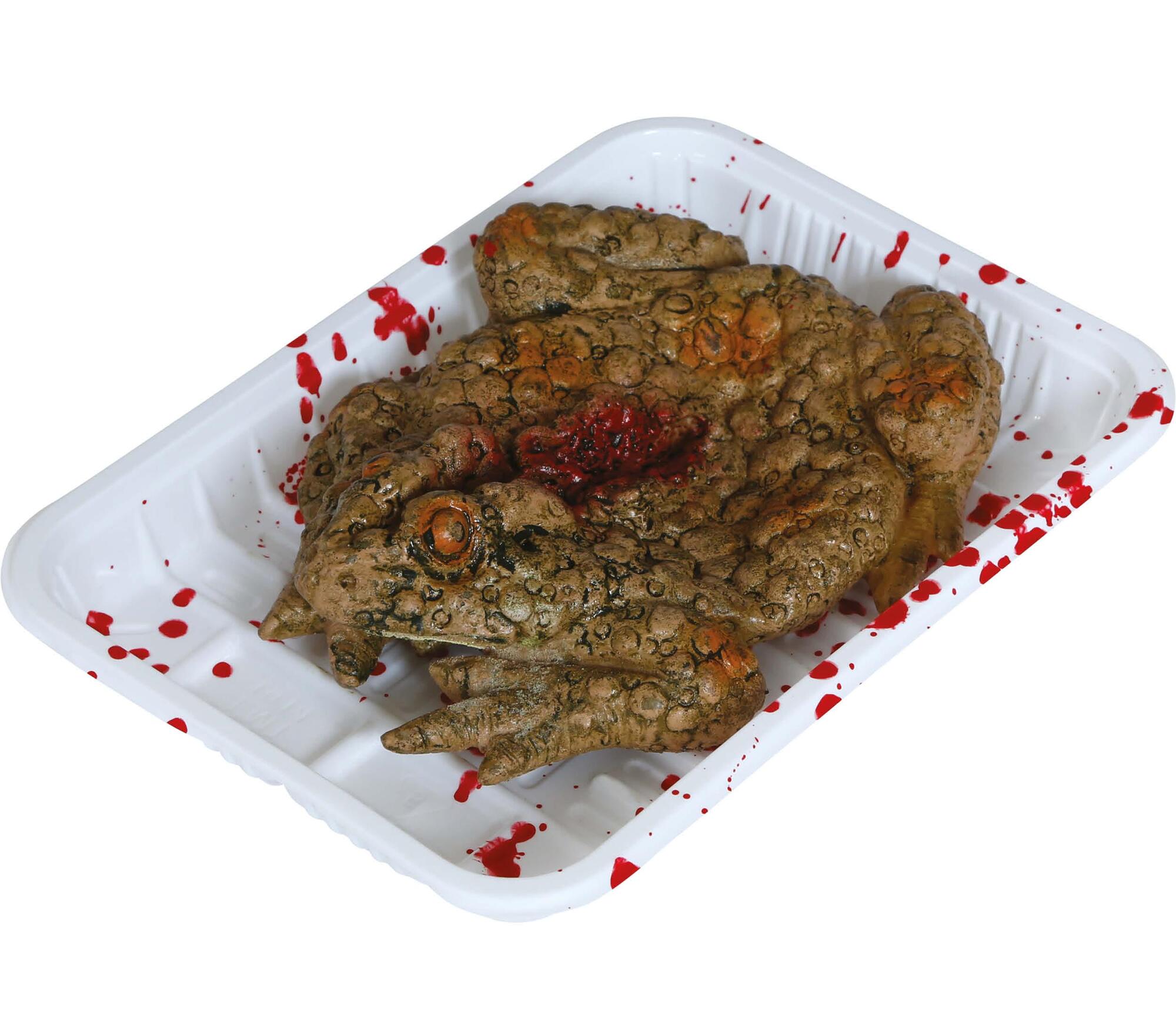 Tilføj et ulækkert twist til festen med denne Halloween-bakke med én stor, klam frø! Den grønne, slimet-agtige figur ligger præsenteret som var den serveret direkte fra en heksegryde eller et uhyggeligt laboratorium. Perfekt som dekoration på snackbordet, som rekvisit til heksekostumet – eller som en sjov chok-effekt til gæsterne. Fremstillet i let plast og gummiagtigt materiale, der føles realistisk og ser lige så ulækker ud som den er harmløs. Brug den alene, sammen med andre “kropsdele” eller som en del af et hjemmelavet haunted corner. En lille, men virkningsfuld Halloween-dekoration til dig, der elsker at lege med uhygge, overraskelser og lidt modbydelig humor.