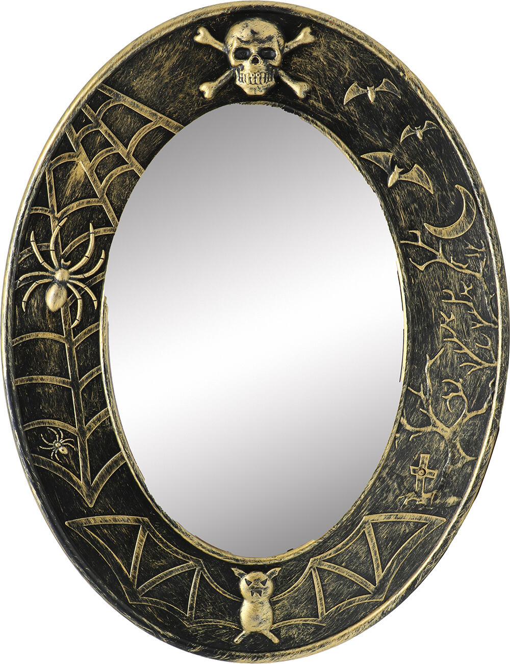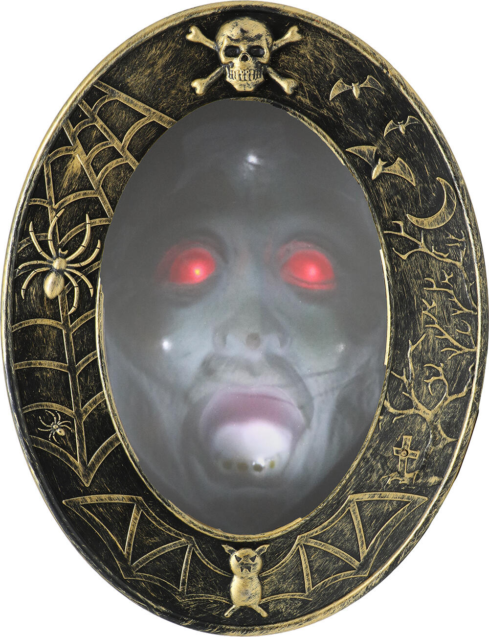 Skab ægte Halloween-uhygge med dette hjemsøgte spejl med lys og lyd! Ved første øjekast ligner det et almindeligt antikt spejl – men når nogen nærmer sig, aktiveres skrækindjagende lyde og lys, der afslører et uhyggeligt ansigt bag glasset. Den perfekte dekoration til entréen, spisestuen eller det hjemsøgte hjørne, hvor gæsterne skal have et chok, de sent glemmer. Spejlet måler 25 x 32 cm og kan nemt hænges op eller stilles på en hylde. Det drives af batterier (typisk ikke inkluderet) og aktiveres ved bevægelse eller lyd, afhængigt af modellen. Detaljerne i designet giver et autentisk, gammeldags look, mens effekterne bringer det dystre spejlbillede til live. Et stemningsfuldt og skræmmende blikfang til enhver Halloween- eller gyserfest, hvor intet er helt, som det ser ud...
