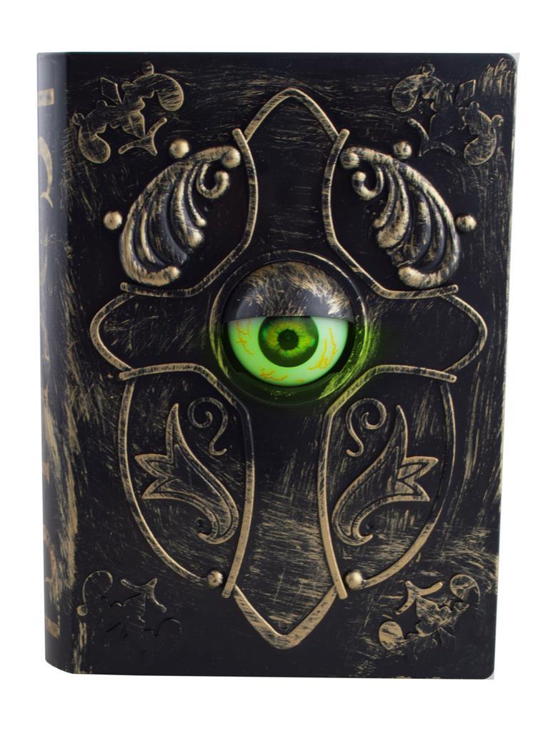 Slip mørk magi løs med denne forbandede tryllebog, der får selv de mest hærdede hekse og troldmænd til at gyse! Bogen kommer med lys, lyd og bevægelse, og det lysende øje i midten følger dig, som om den lever sit eget uhyggelige liv. ✨ Perfekt som Halloween-dekoration til bordet, reolen eller vinduet – denne tryllebog tilføjer en mystisk og magisk stemning til enhver uhyggelig opsætning. Når du aktiverer den, begynder den at bevæge sig, udstøde skræmmende lyde og gløde med et ildevarslende lys – det føles næsten som om en gammel besværgelse er blevet brudt. Et must-have til enhver, der elsker spooky dekorationer med wow-effekt! Brug den som midtpunkt i din Halloween-udsmykning, eller giv den en plads i dit hjem som den ultimative samtalestarter.