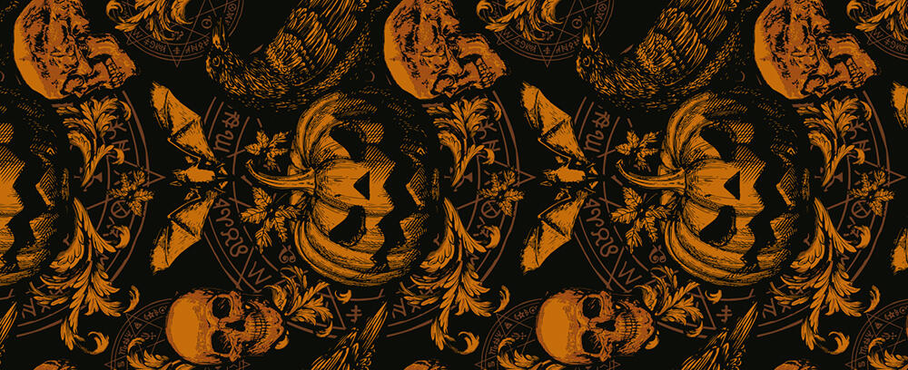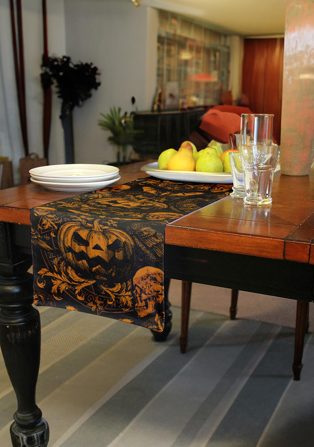 1 stk flot sort-orange bordløber med græskar og flagermus figurer.