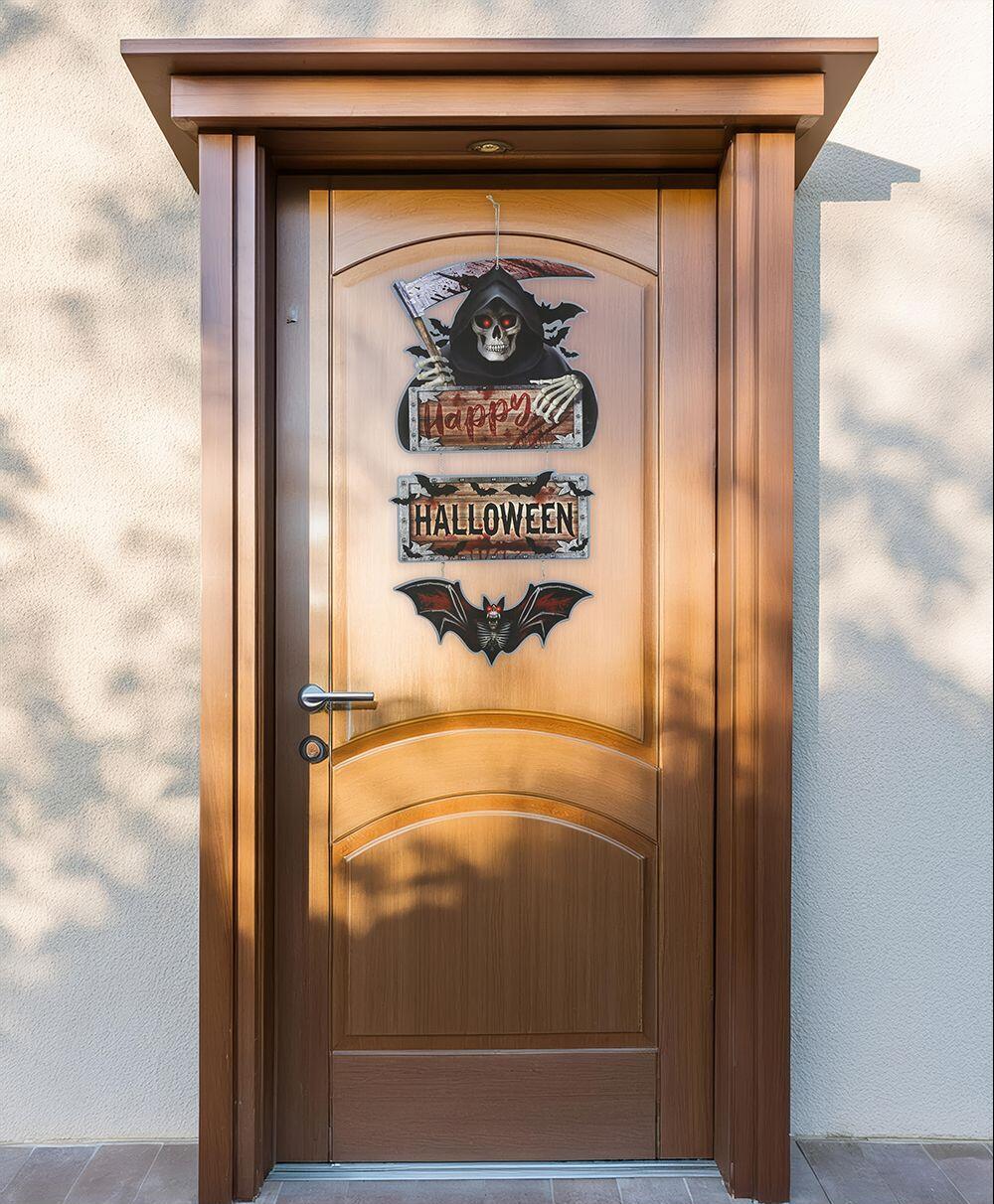 1 stk Halloween dør dekoration. Skiltet er delt op i tre dele og hænger sammen i en snor