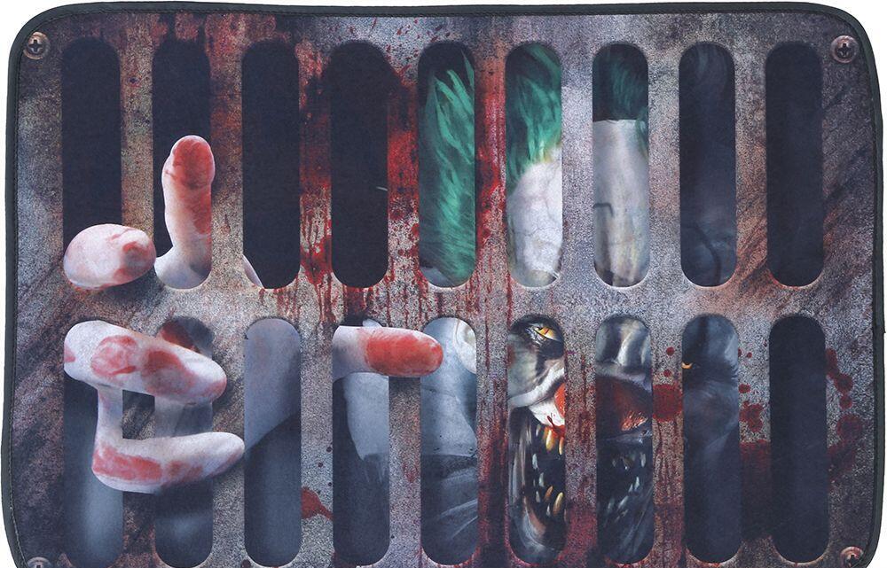 Byd dine gæster velkommen med et grin og et gys med denne klovn i afløb dørmåtte! Inspireret af klassiske gyserfilm, viser måtten en uhyggelig klovn, der kigger op fra afløbet – klar til at give et chok til enhver, der tør træde indenfor! Den måler 60x40 cm, og er perfekt som halloween pynt ved hoveddøren, i entreen eller foran festlokalet. Fremstillet i slidstærkt materiale, så den både kan tåle sko og chokbølger fra skræmte gæster. Skab en skræmmende stemning fra første skridt – denne måtte er det ultimative halloween twist til hjemmet, der får alle til at snakke (og måske skrige lidt)!
