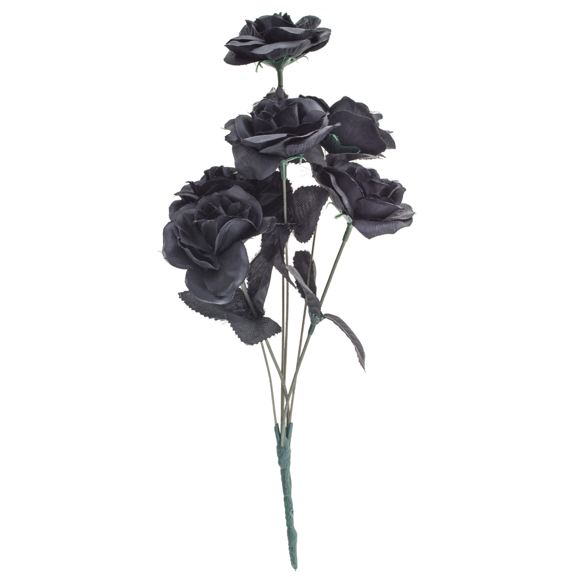1 buket sorte falske roser. Buketten består af 6 roser.