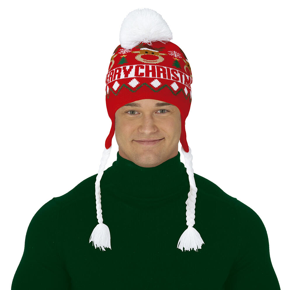 Gør dig klar til vinter og julehygge med denne strikkede hue med fletninger i juletema! Den perfekte kombination af varme, komfort og festlig stil – ideel til julefrokoster, udendørs arrangementer, skiture eller bare en hyggelig gåtur i decemberkulden. Huen er fremstillet i blødt, strikket materiale, der holder dig dejligt varm, mens de lange fletninger og julede farver giver et sjovt og charmerende udtryk. Passer perfekt til både børn og voksne, der elsker at vise julestemningen fra top til tå. Med strikket hue – med fletninger – juletema får du et sjovt og praktisk vinteraccessory, der spreder glæde og smil overalt, hvor du går.