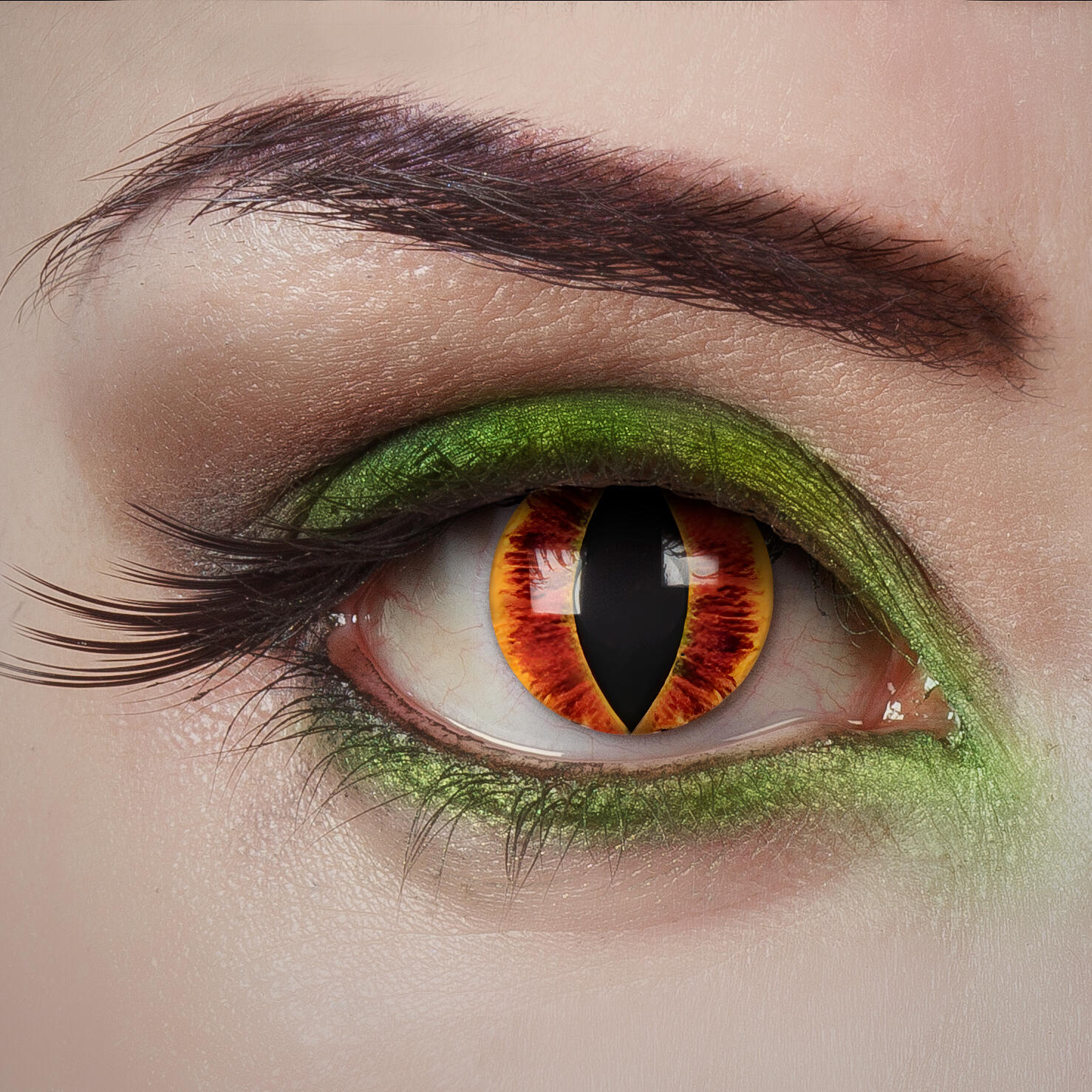 Slip dit indre rovdyr løs med disse katteøje 1-dags linser! Med lodret pupildesign og intense farver som gul, grøn eller rød skaber linserne et dristigt, dyreinspireret look, der passer perfekt til kattekostumer, dæmoner, drager og fantasy-karakterer. Linserne er beregnet til éngangsbrug, hvilket gør dem hygiejniske og nemme at anvende. De er bløde, komfortable og sidder flot på øjet hele aftenen. Et iøjnefaldende valg til Halloween, cosplay eller temafest – hvor du vil ses og huskes!