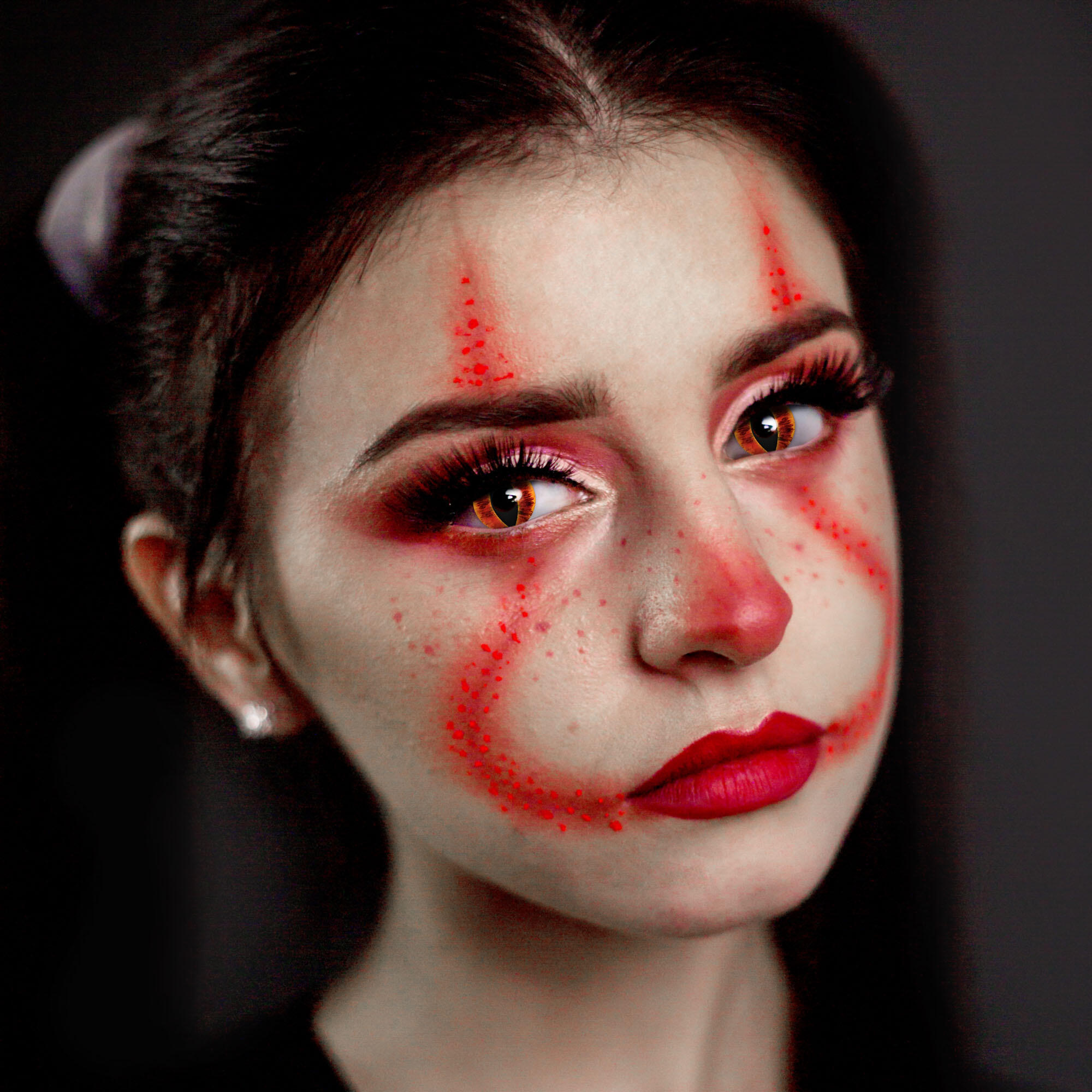 Pakken indeholder 2 stk linser i den fedeste rød/gule farve med katte pupil.