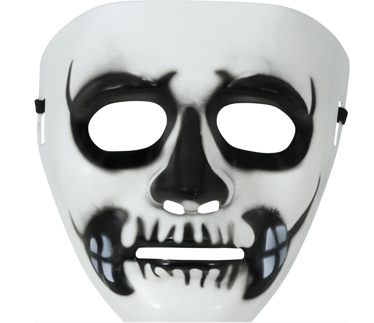 1 stk hvid maske med sort skelet. Masken er lavet i plast