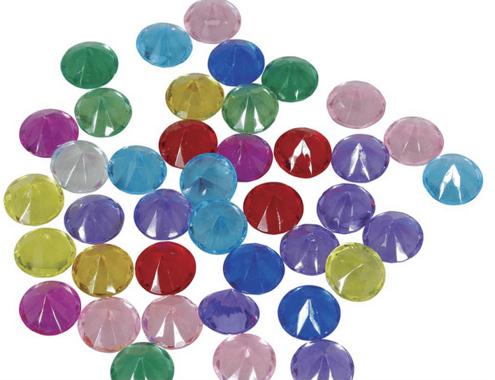 Pakken indeholder 50 stk transparente diamanter i plastik