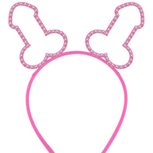 Penis hårbøjle i lyserød metal med glitterlook. Hårbøjlen har to penis i lyserød med glitrende lyserøde plaststen og er one size til voksne.