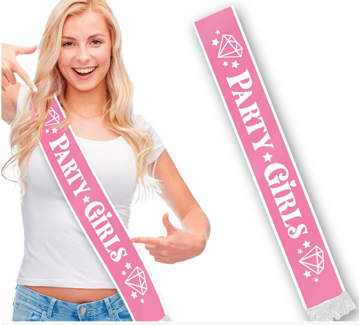 Er du og veninderne klar til en aften fyldt med grin, dans og lidt for mange selfies? Så er denne Party Girls-sash i hvid med lyserød tekst jeres perfekte accessorie! Den stråler af fest, sammenhold og girl power, og sætter tonen for en aften, hvor ingen skal hjem før det bliver lyst (eller mascaraen løber). Uanset om det er til en polterabend, fødselsdag, byturs-maraton eller bare en vild pigeaften, så sørger denne sash for, at I bliver set – og husket. Den er let at tage på, sidder flot over skuldrene og matcher perfekt til både stilethæle og sneakers. Og lad os være ærlige: Det føles bare lidt federe at feste, når man bærer det med stil.