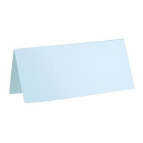10 stk Bordkort i kraftig lyseblå karton. Bordkortene er dobbelte og måler 3x7 cm til hver side når de er foldet på midten.