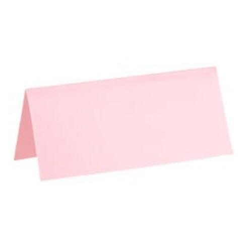 10 Dobbelte bordkort i fin pastel lyserød som måler 3x7 cm når de er foldet på midten.