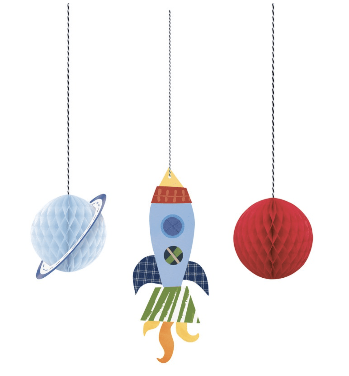 3 stk Honeycombs med rum tema, saturn, mars og et rumskib, perfekt til at hænge op til fest med space eller alien tema.