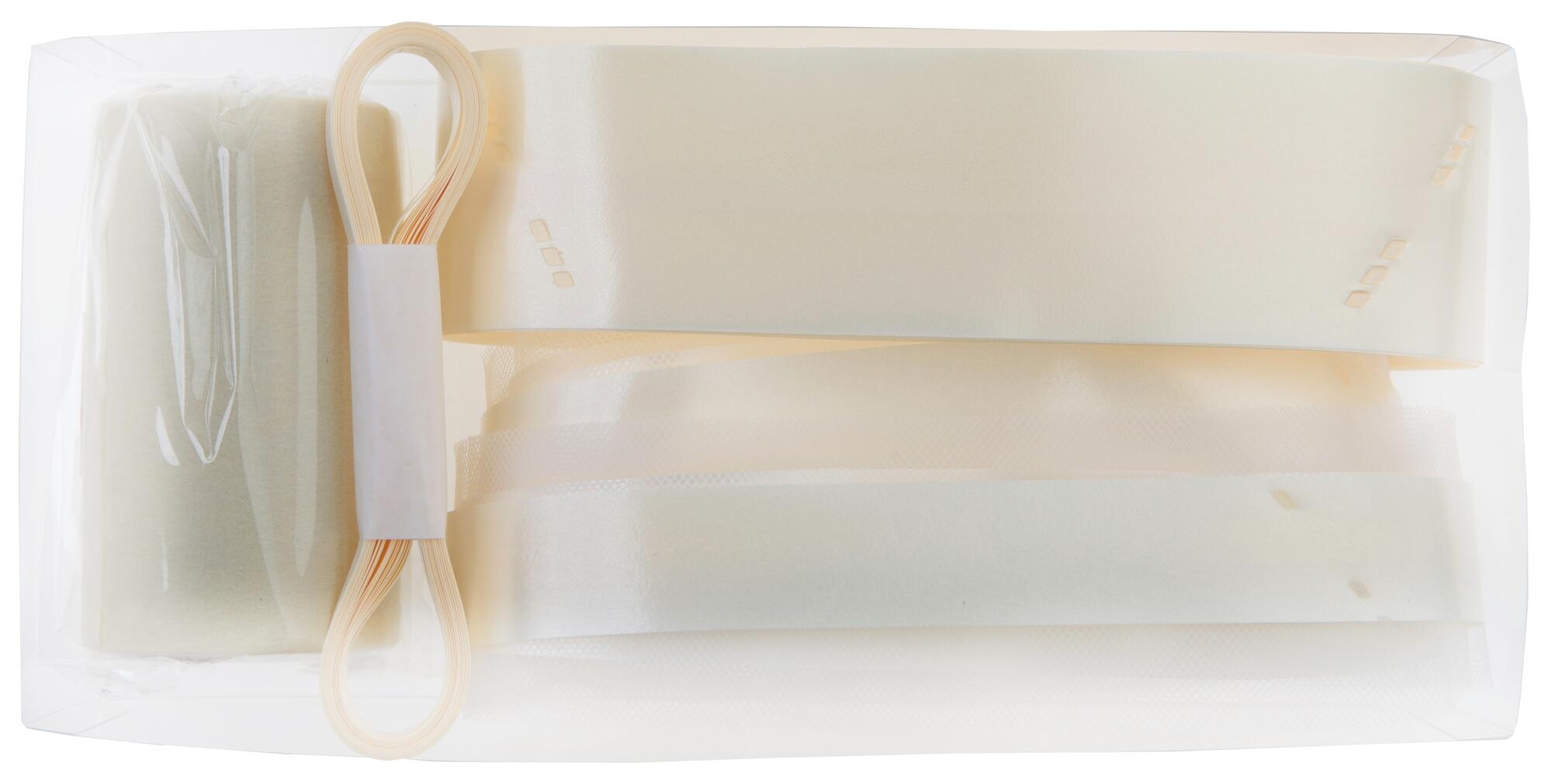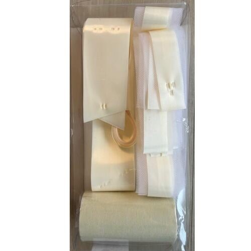 Indeholder 1 rulle filt bånd 10m,1 satinbånd 10mm x 10meter, 2 tyl sløjfer og 2 satin sløjfer. Sløjferne har en "træk-sammen" funktion så man blot hiver i en snor, så folder sløjferne sig selv fint sammen.