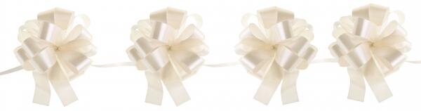 Guirlande til brudebilen : sættet Indeholder 1 stk pull-sløjfe guirlande i cremefarve med 3 meter snor og 10 stk. pull-sløjfer. - OBS! foto er vist med flere guirlander, sat ved siden af hinanden.